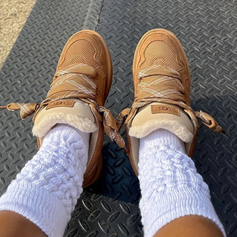 Minkšta zomša, lengvas tinklelis ir ryškūs raišteliai sukuria išskirtinį įvaizdį. Kiekvienas žingsnis – tarsi vaikščiojimas ant debesų: lengvas, bet itin stabilus. Džinsai, sijonas ar sportinės kelnės – šie sportiniai bateliai akimirksniu pavers bet kokį aprangos derinį stilingu ir išskirtiniu.